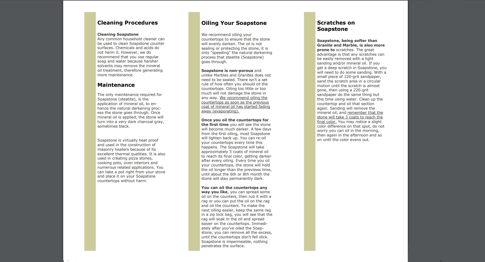 Helpful resources for cleaning & care of Soapstone (Natural) Stone: